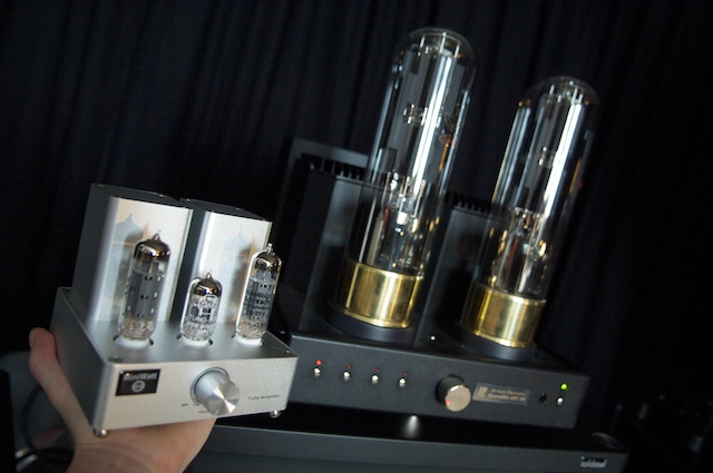 Véritable amplificateur intégré à tubes (driver 12AX7 et étage de sortie en EL84!!!) il n'est pas plus grand qu'un CD!