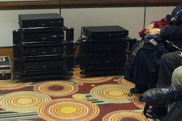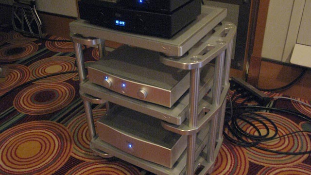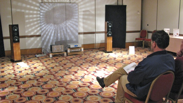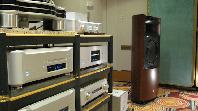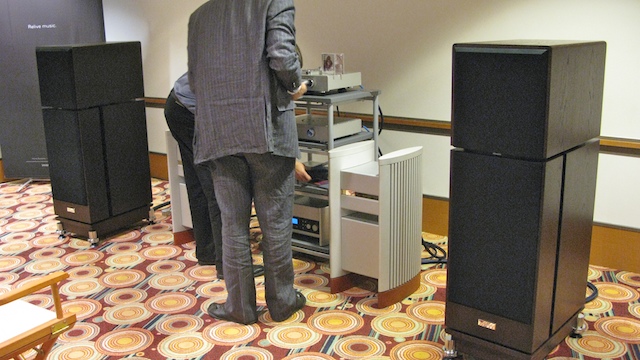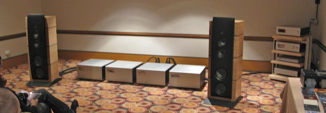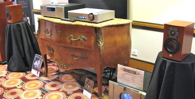 En écoute, les 4260, représentent le meilleur son du salon. Le design est évidemment particulier... mais les prestations promettent du haut niveau en soignant la source et les câbles. L'amplificateur est le nouveau Perreaux (Dont DEA vient de reprendre la distribution).