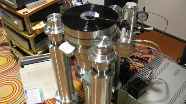 Petit détail comique, le cd et le pre-ampli sont posés sur un meuble style Louis XIII un amusant anachronisme en rapport avec notre fameux tapis et la modernité des appareils ;-)